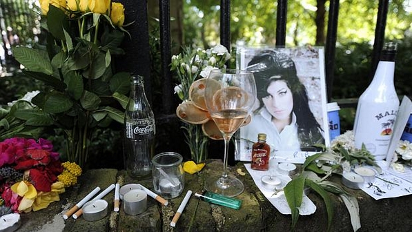 As homenagens para Amy Winehouse não param, fãs que desde sábado rodeiam a casa da cantora, fizeram um mini-altar. Com fotos, bebidas, cigarros e tudo que Amy gostava. Muitos acharam a foto ofensiva, mas todo tipo de homenagem é válida, as formas de amor devem ser expressadas.